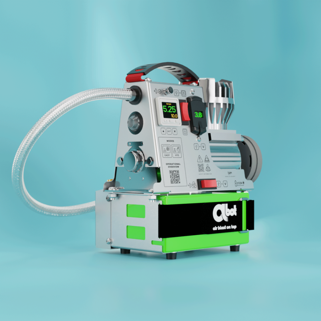 ABOT is the new powerful compact solution for blast beading bicycle tyres. Perfect for all your other air inflation tasks in and away from home.